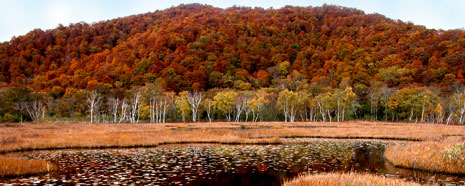 【 [10月] 鮮やかな木々の紅葉と黄金色に染まる草紅葉】